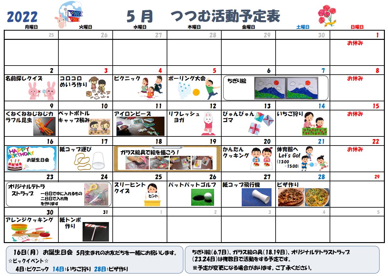 誕生日会、お出掛け、料理、運動系、製作系の活動など、いろいろな活動を行っています。その中で子どもたちが個々に自己の成長を感じられるように取り組んでいます。