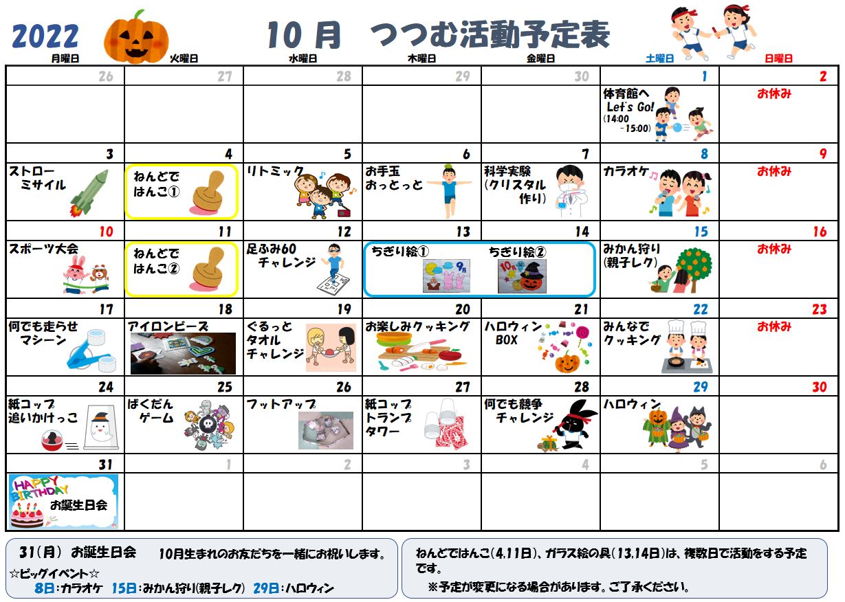 10月の活動予定です。 (予定であり、変更が発生する場合があります。) 秋のおとずれを肌で感じるようになってきました...
