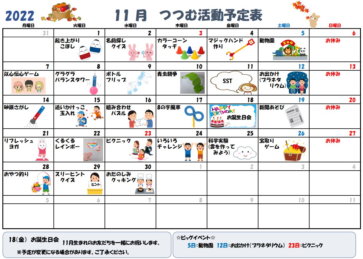11月の活動予定です。 (予定であり、変更が発生する場合があります。) 秋らしい好天に恵まれ気持ち良い日々が続いてい...