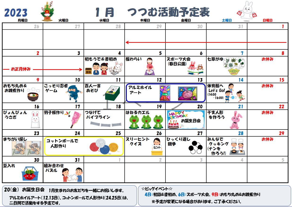1月の活動予定です。 (予定であり、変更が発生する場合があります。) 明けましておめでとうございます。 1月は、初...