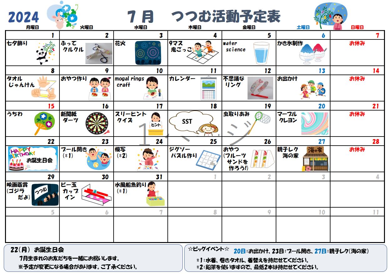 7月の活動予定です。 (予定であり、変更が発生する場合があります。) 梅雨でジメジメした日が続きますね。近年の大雨に...