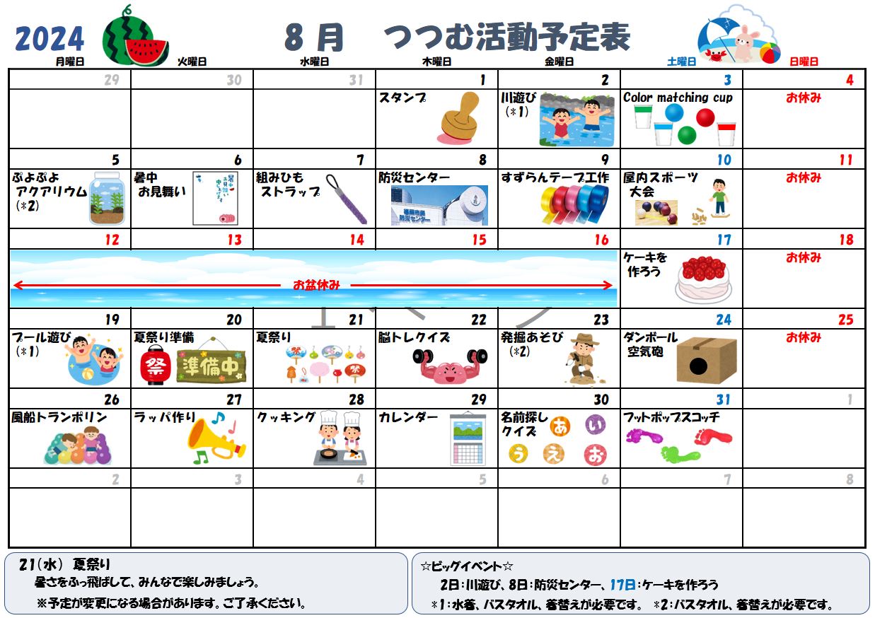 8月の活動予定です。 (予定であり、変更が発生する場合があります。) 早いもので夏休みの1/3が過ぎましたが、今年は...