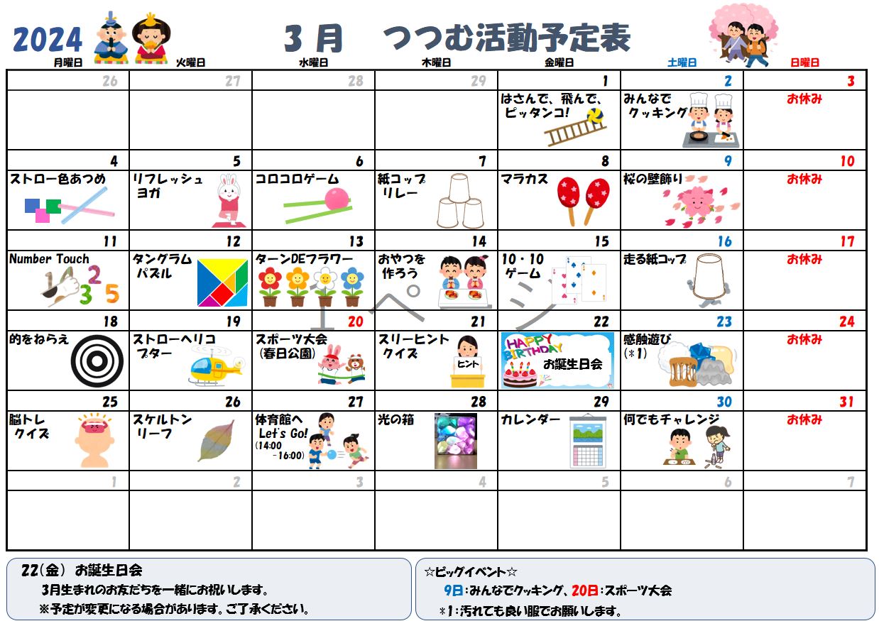 3月の活動予定です。 (予定であり、変更が発生する場合があります。) 年度最後の月になりましたね。振り返ると1年があ...